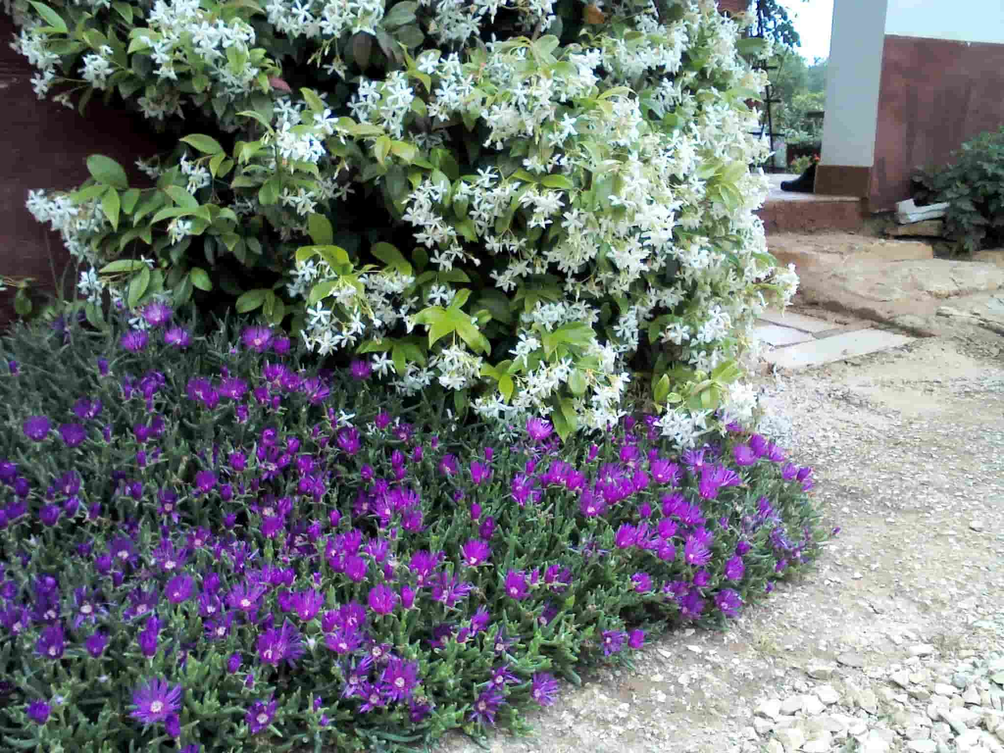Isto tako zimzeleni jasmin / zimski jasmin se lijepo uklapa i sa drugim biljkama, npr Pustinjskom ružom (Delosperma cooperii)